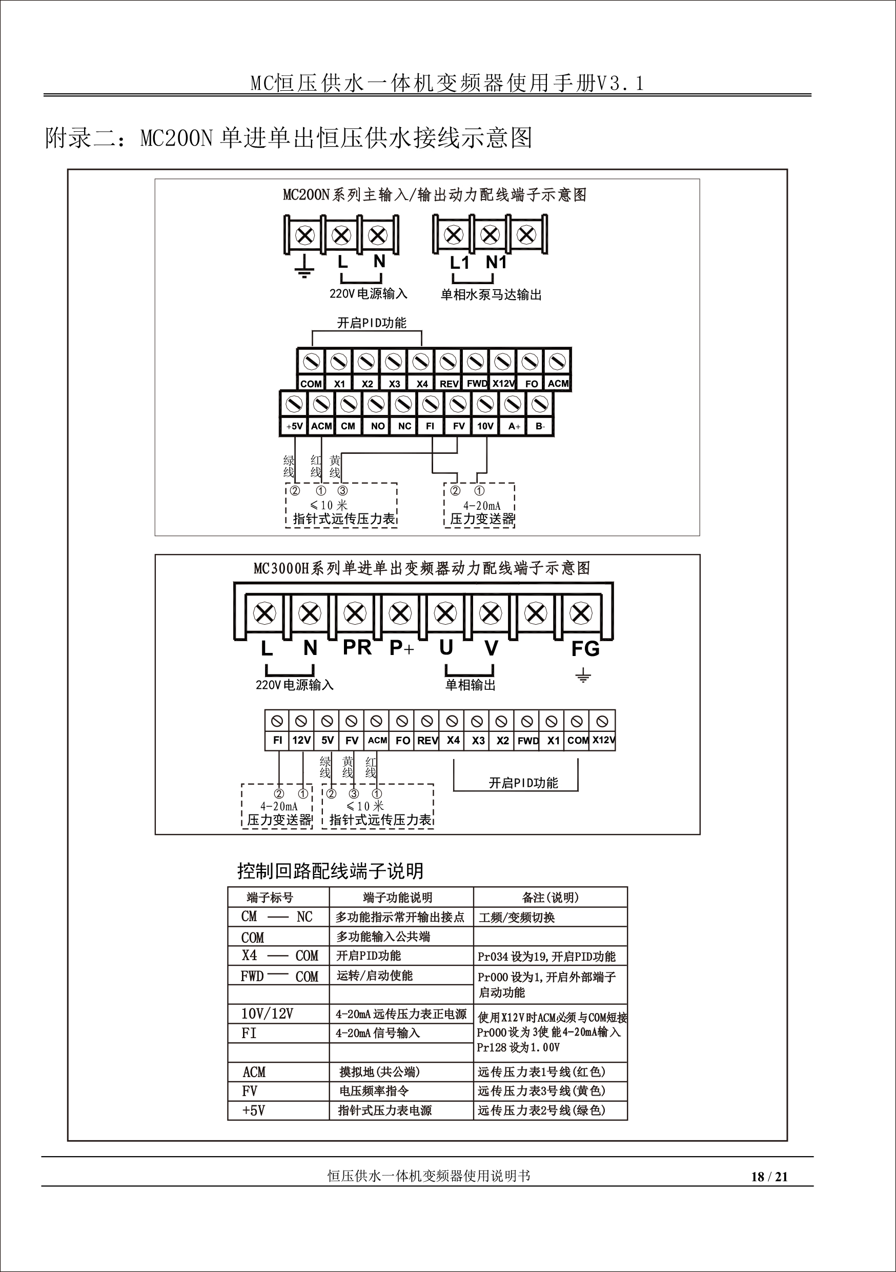 MC恒壓供水一體機變頻器使用手冊V31-181205
