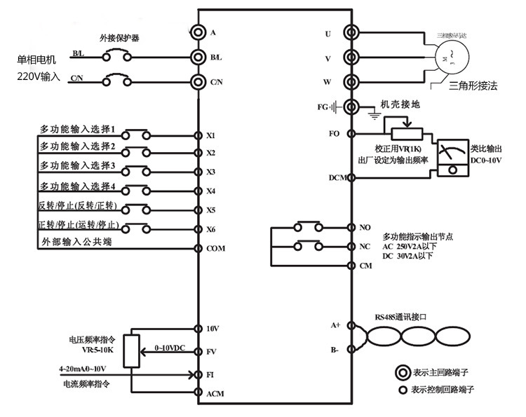 11.多功能繼電器輸出,實現(xiàn)運轉(zhuǎn)中、頻率到達、外部異常等各種狀態(tài)時繼電器輸出