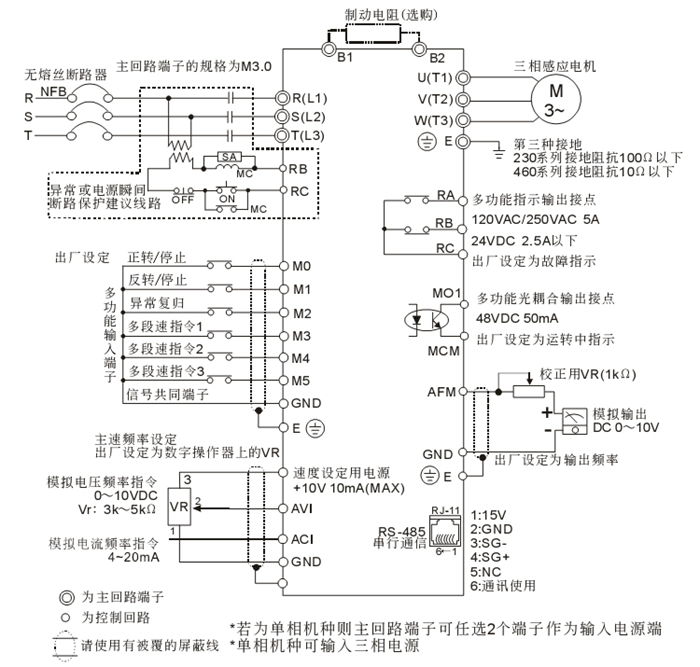 6、提供多種速度控制接口4-20Ma、0-10V、外部8段速控制、標準MODBUS 485通訊。